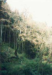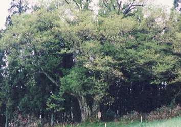 ちによって消失してしまったとの事。全体に苔むした背の高い樹影で、根元近くには大枝の損失跡があるが、樹