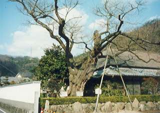 に解る。幹はまだ周囲3mには満たない若木だが、その枝振りの美しさでファンも多い。同じく仁淀村の