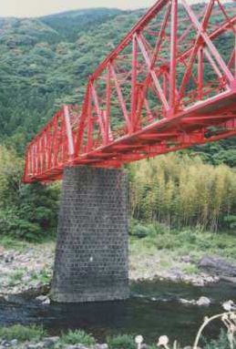 橋がある。当時はこの鉄橋をガタゴトと鳴らして、巨木を満載した貨車が50両も連なったという。中には直径3mで樹齢500