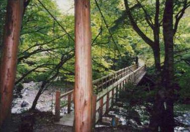 見上げれば高い樹幹の隙間から墨色の雨雲が立ちこめている。徐に山を下り、吊り橋を渡ると、雨足はいよいよ強まって