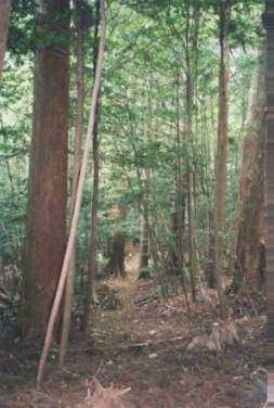 目通り3m以上のものが1000本以上。この吊り橋から向こうが巨木の森である。そしてこの吊り橋のすぐ先にあるのが