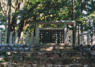 長い石段の先に、御陵特有の神明鳥居がある。玉垣の中は木々が煩雑に茂り、人が立ち入る気配も無い。