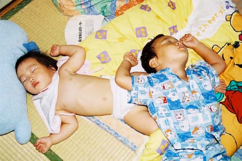 なんちゅーカッコで寝てるんだ君たち・・・(夏の写真ですねえ)
