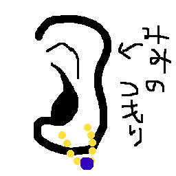 かおこの左耳にはピアスがふたつついてます。右耳にはありません。二つつながったピアスをしたかっ