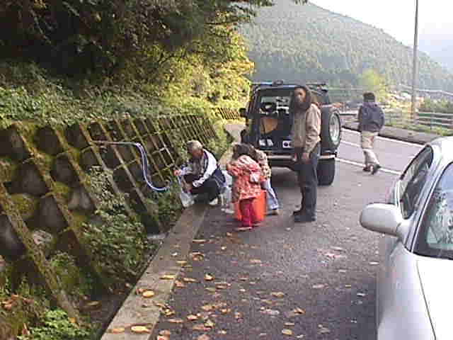 次々と ペットボトルや ポリ缶を持って 車で やって来る