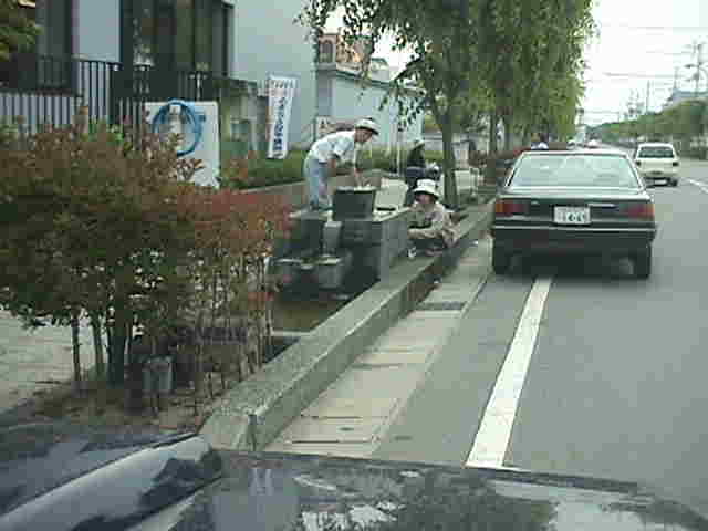 この うちぬきは 道を挟んで 両側にあり ひっきりなしに 車で水をくみに来ているのだが