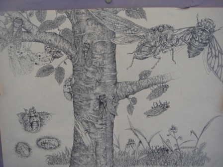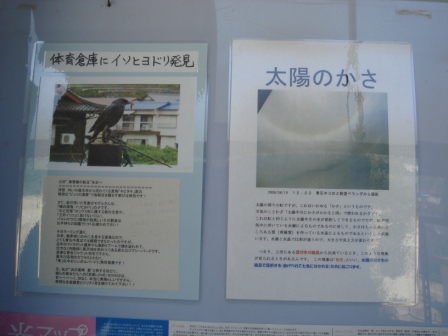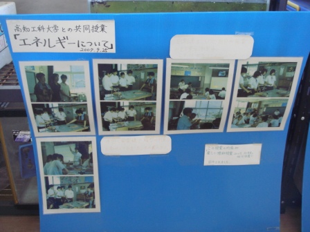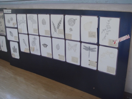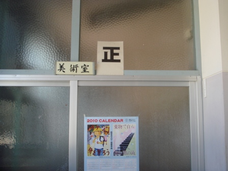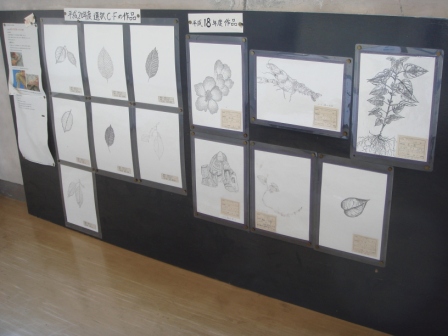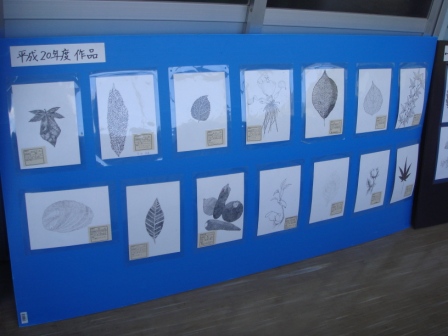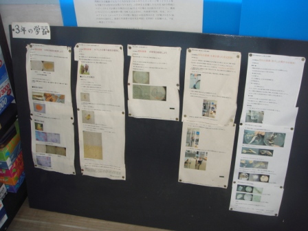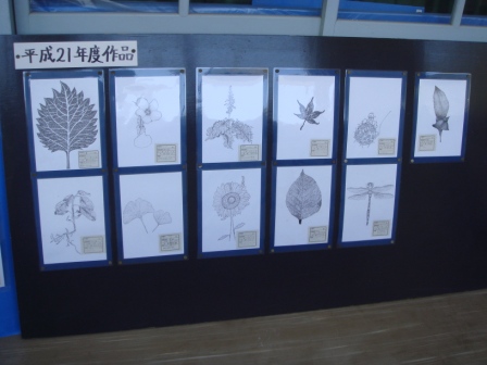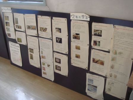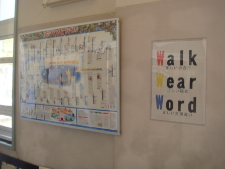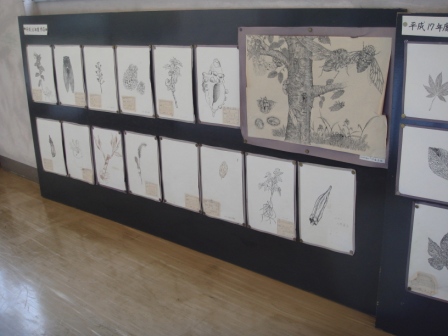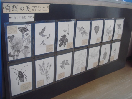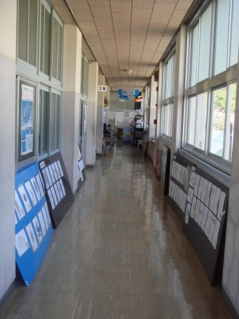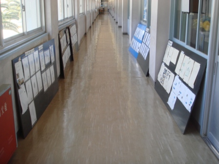廊下には、生徒の作品を展示 (プラスチック段ボールを利用)