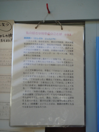 卒業生からのメッセージには、理科の授業を受けるコツなども紹介されています。