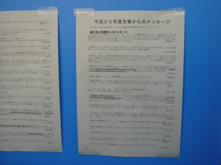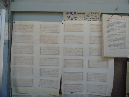 地域の方からいただいた水槽 卒業生から新入生や在校生へのメッセージ