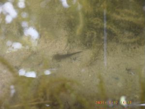 何もいなかった池に、イモリやアメンボが住み着いていました。