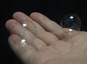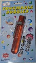 | 割れないシャボン玉 | ![]() ![]() | レストランすかいらーくグループのガスト(愛媛県大洲市)でおもしろいグッズを手に入れました。値段は360円でした。TOUCHABLE BUBBLESという商品名です。残念ながら製造元はわかりません。シャボン玉を作り、数秒経つと、さわってもわれません。水が蒸発すると昔売られていた酢酸ビニルを主成分としたプラスチックの風船のように固まるようです。 | |