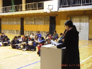 6時すぎに本校にスターゲイズの船本さんと石坂さんが到着する。セッティングをして、少し安心する。いよいよ予定時刻の6時45分なる。4日前の案内にもかかわらず、集合場所の体育館には約70名(中学生約40名、小学生約15名、大人約15名)の小中学生が集まる。