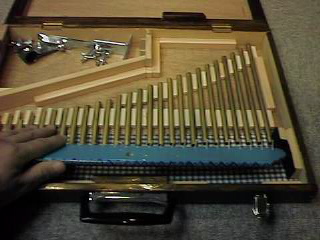底に木片を張り付けてパイプが収まる様にしています。 また、フレームのところは布やフェルトを貼っています。 この様にピッタリと納まる。
