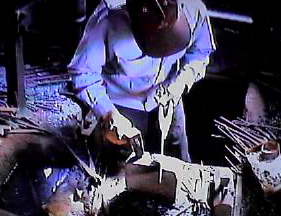 切断したのでペンチで摘んで窯から出す。
