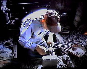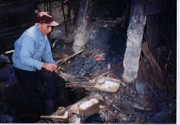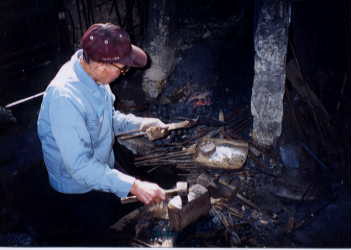 こうして何度も炙っては表面を見ている。見た感じで鉄の具合が分かるのだろう。