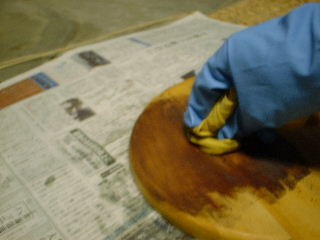 オイルをウェスで塗ります。