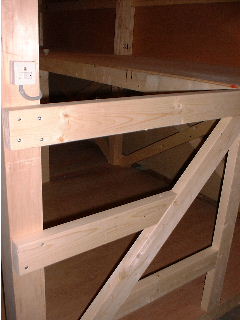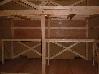 2階の部分です、ベニアで締め切ってもよかったのだけどX型に筋交いを入れてます。かなり丈夫です。