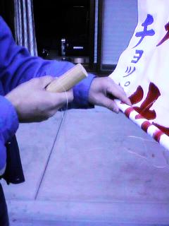 そして、”てこの原理”で垂れ幕が落ちるしくみです。