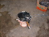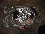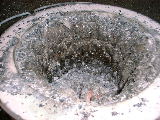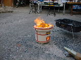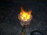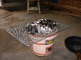 30分くらいしたら金網の上に置きます。通風孔を徐々に明けて行きます。アルミが溶け出したら素焼きは完了です。