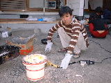 この他にも今年(2002年)は6,7回はやりました。第一回目で乾燥が不十分で失敗したので、それ以降は粘土の成型を一日一個気が向いたときに作り、ある程度ストックが溜まったら、休日に焼き上げるというやり方にしています。