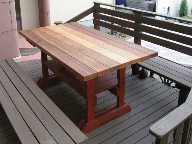 年にウッドデッキを製作してからテーブルを作る予定でしたが、のびのびになっていてやっと作りました。