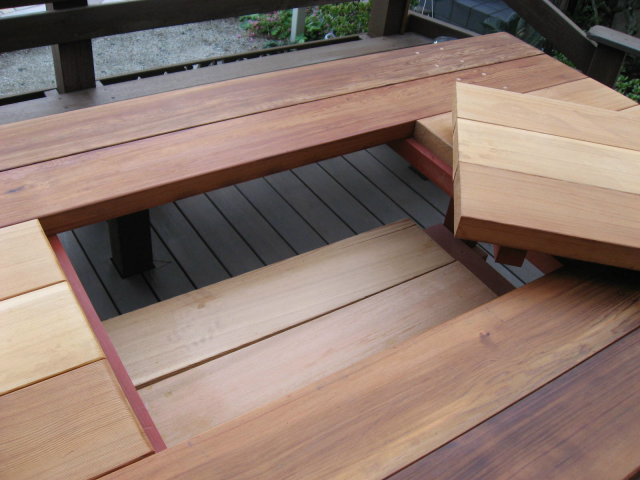 ・材木 レッドシダー 屋外で使うので耐久性のよい木材が適しているがハードウッドは重たいのでレッドシダーに決定。