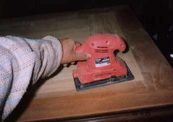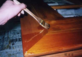 ステインで塗り濃い木目調にした後、ニスを塗ります。